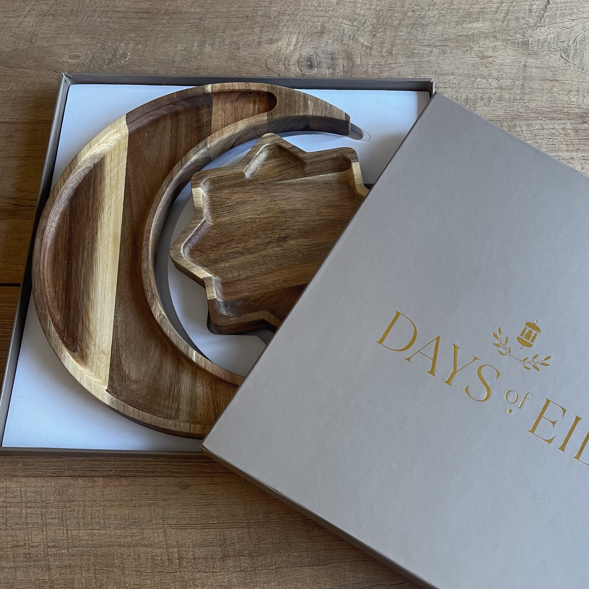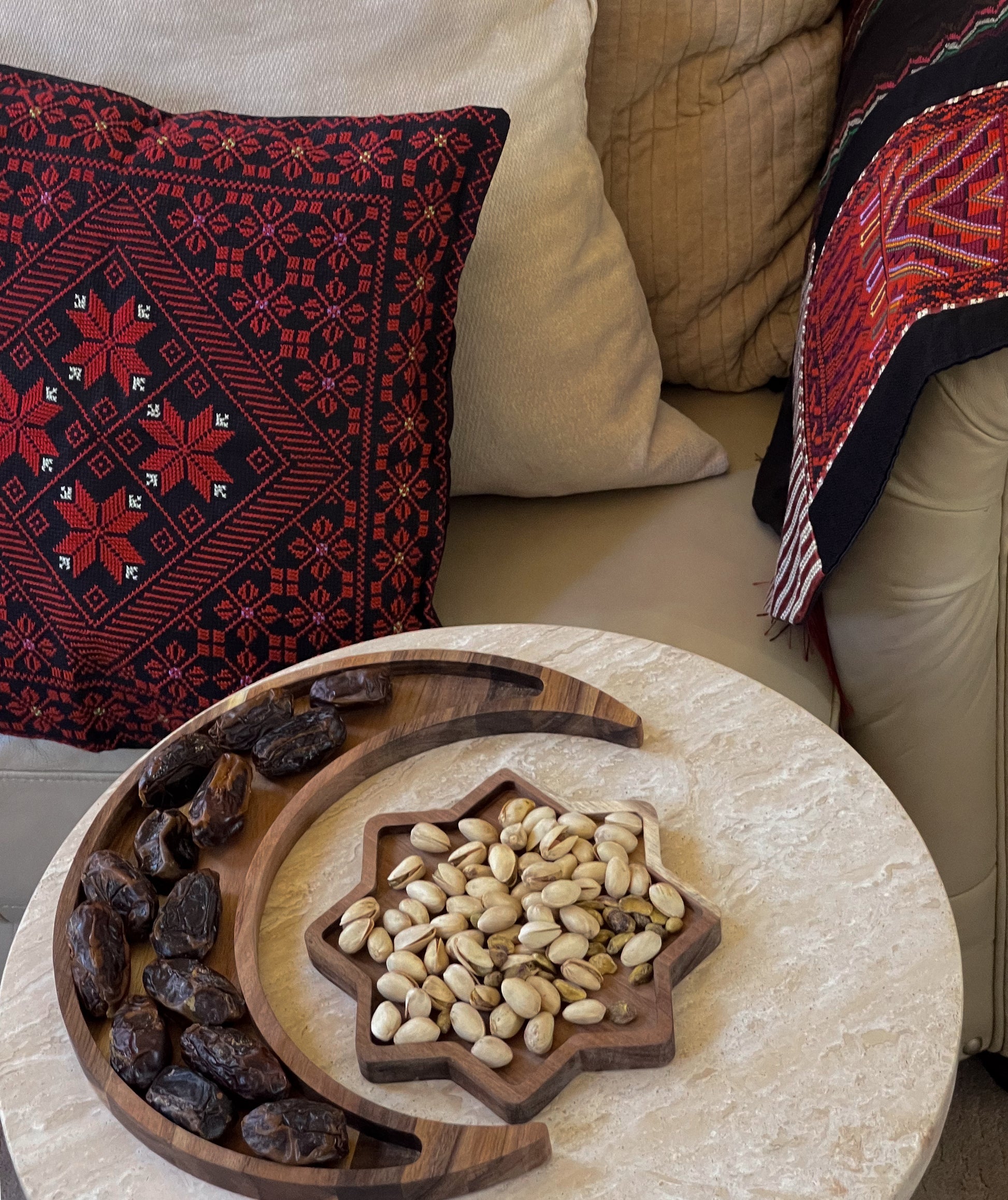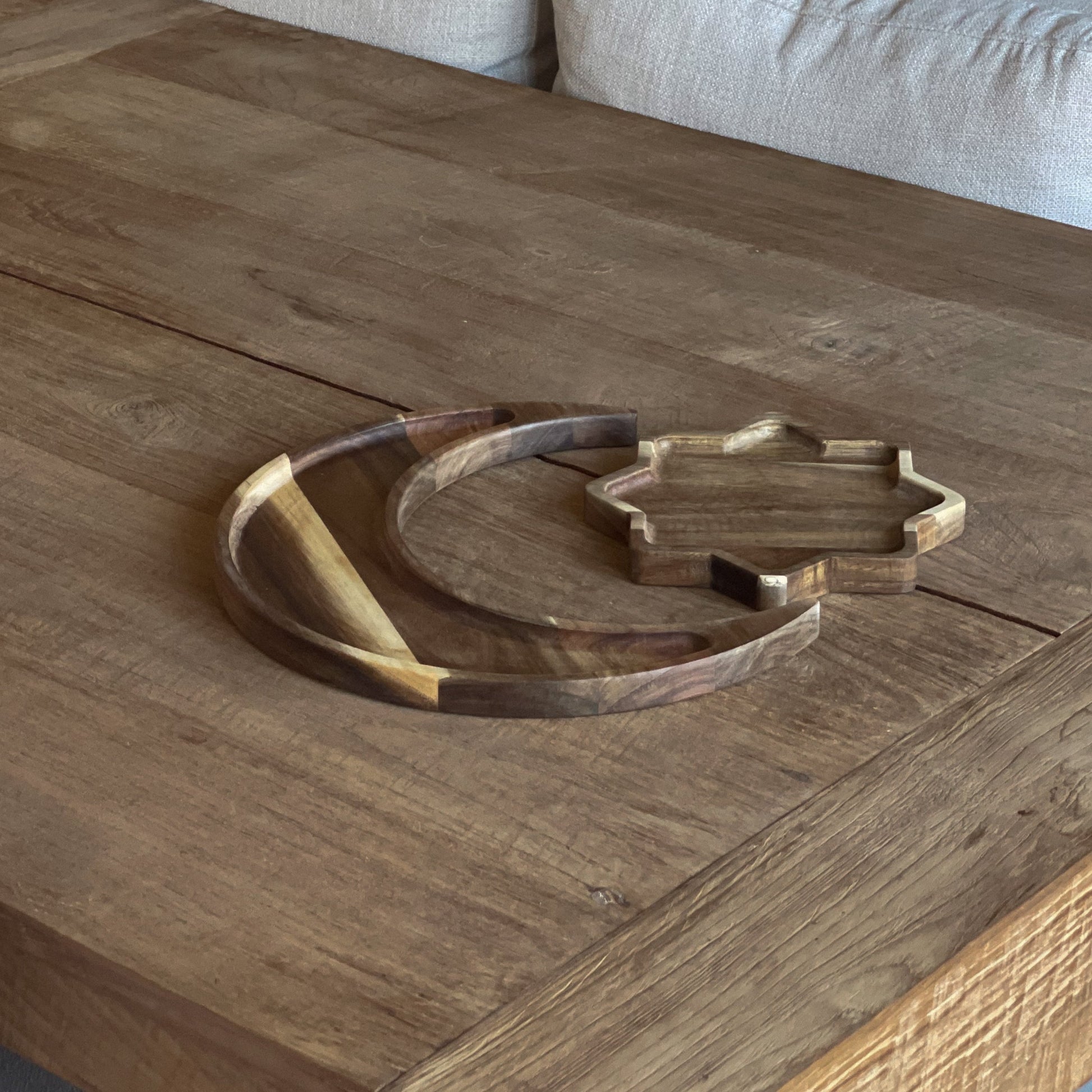 This real acacia wood tray is the perfect way to greet your guests this Ramadan. We switched out our original star with an 8 point star, a classic Islamic art motif. Each piece will have natural variations in grain and color pattern.