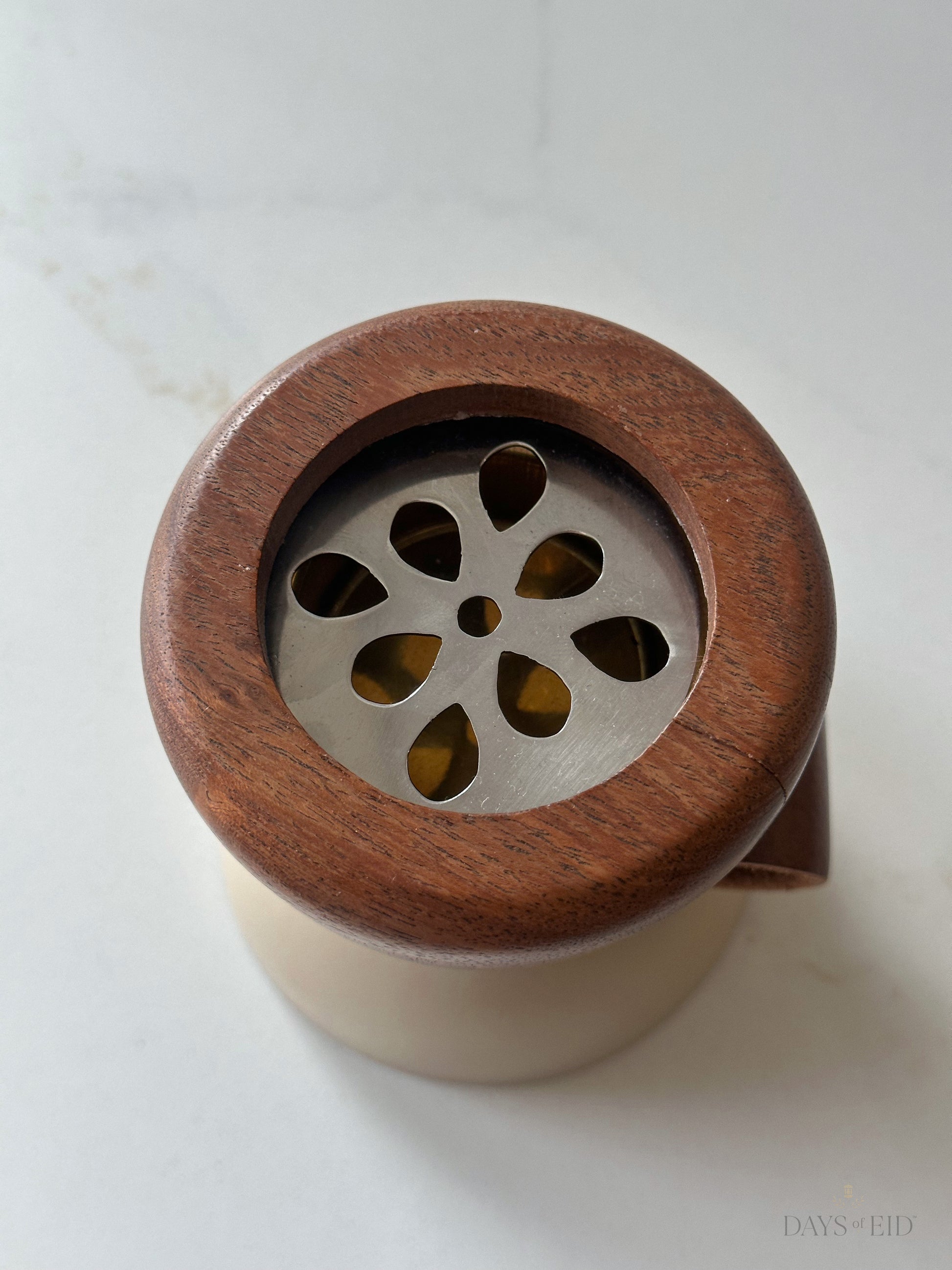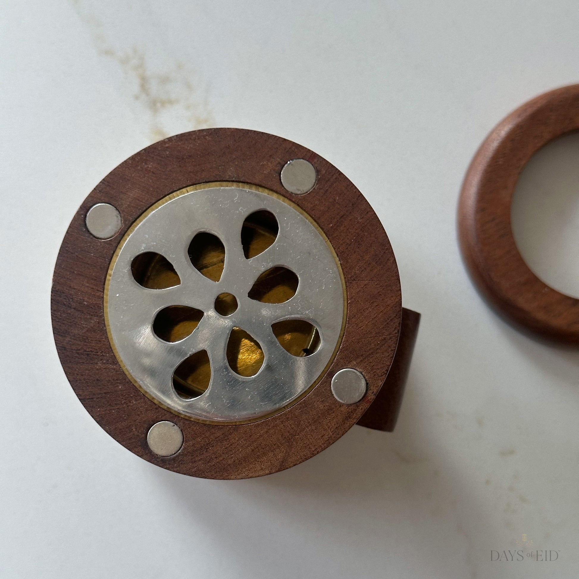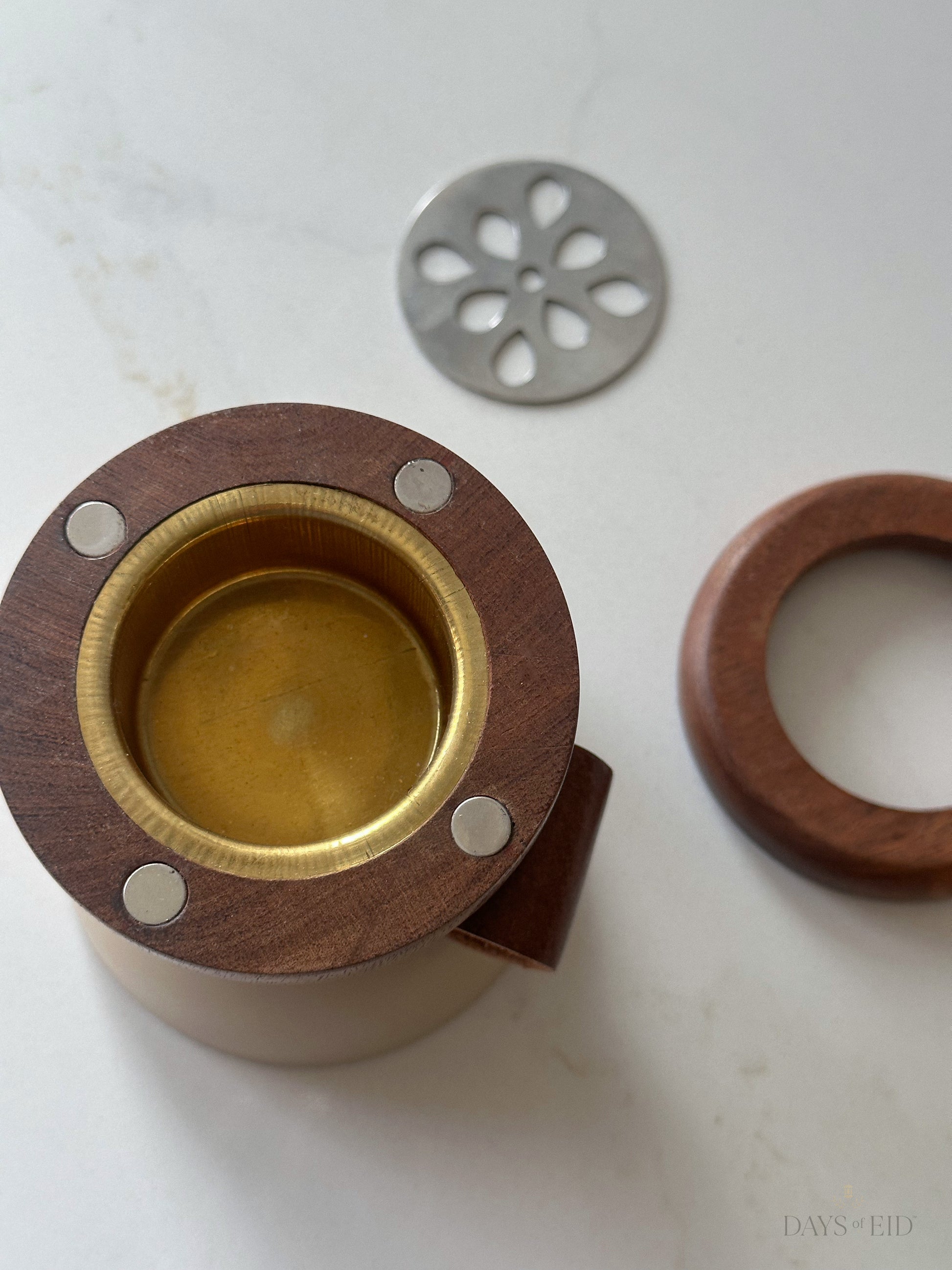 Crafted with real wood and metal components and finished with a leather handle for easy transport, this Bukhoor Burner Set is ideal for burning oud and incense. Thoughtfully designed to balance traditional craftsmanship with modern elegance, it brings warmth and ritual into any space.