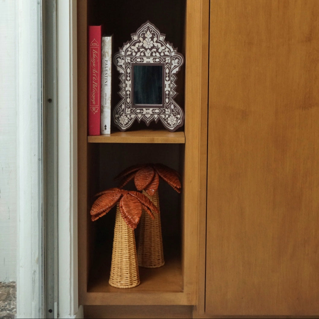 Bring a warm, intentional touch to your home with this two-piece wicker palm tree set, hand-woven by skilled artisans from natural raffia in the same coordinating colors as our matching minaret set. With one larger palm and one smaller, this duo adds a beautiful balance of texture and meaning—effortlessly blending Islamic-inspired styling with today’s on-trend woven décor.